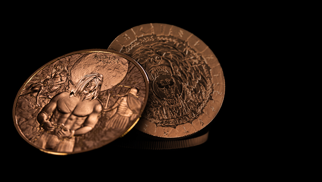 2026 Bödvar Saga: Loss 1 oz Copper BU – 25,000 pieces, presented in a capsule with a lens and Certificate of Authenticity.