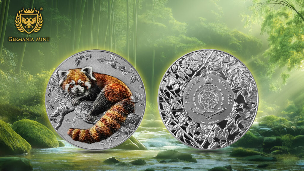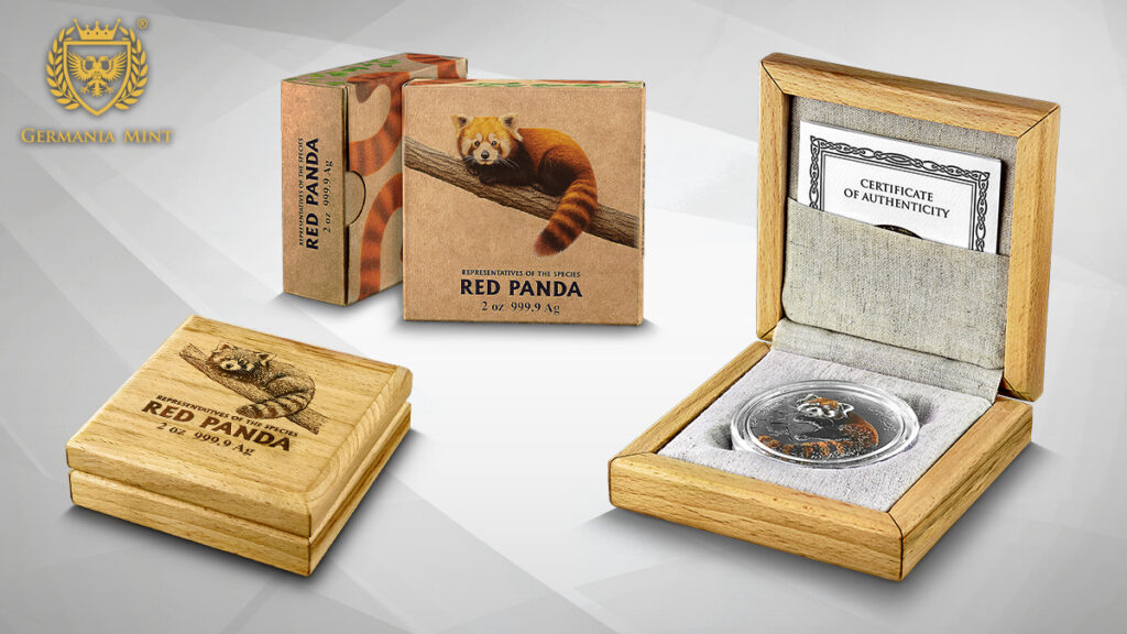The Red Panda coin is the result of artistic collaboration between Germania Mint and the Mint of Poland. Struck from 2 ounces of pure silver, it embodies the highest standards of numismatic craftsmanship. The ultra-high relief reveals every strand of fur and the animal’s soft expression, while a delicate metallic finish accentuates natural shades of redand brown, bringing the design to life.